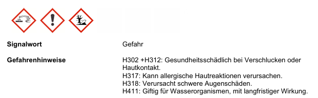 P302 + P352 BEI BERÜHRUNG MIT DER HAUT: Mit viel Wasser/.../waschen.
