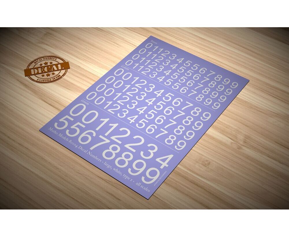 Decal Numbers - large, white, type 1