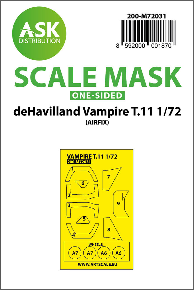deHavilland Vampire T.11 one-sided painting mask for Airfix