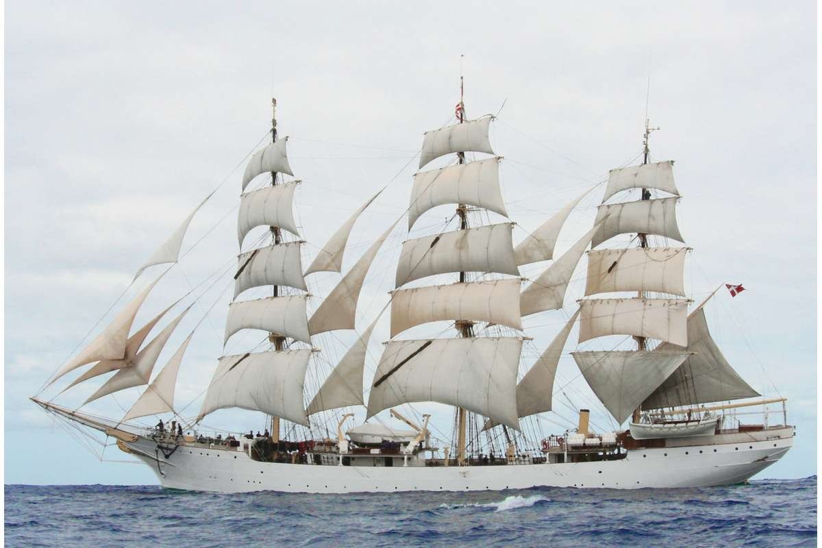 Das dänische Staatsschulschiff für zukünftige Navigatoren. Gebaut aus Stahl auf der Nakskov-Werft A/S und abgeliefert im Jahr 1933. Sie ist mit sechs wasserdichten Schotten, Funktelegrafie und einem Dieselmotor mit 250 PS ausgestattet.