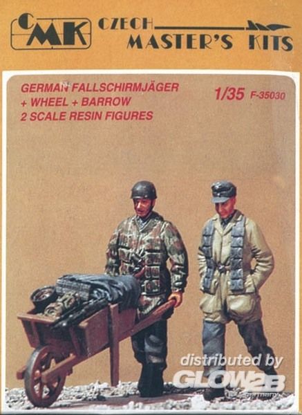 Deutsche Fallschirmjäger mit Schubkarre WW II 2 St.