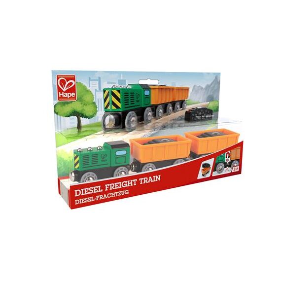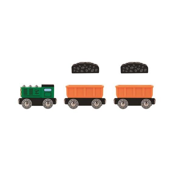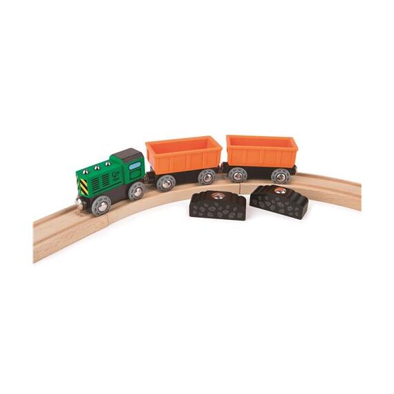 Schiebe den Diesel-Frachtzug die Schienen entlang, um Güter zum Markt zu transportieren! Die Waggons des Zugs sind mit Erzblöcken beladen, die vom grossen, magnetischen Kran angehoben werden können.