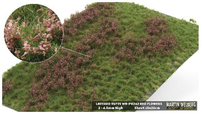 Diorama Grasbüschel, Blumen rot, 15x21cm