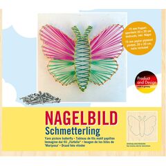 Nagelbild Schmetterling, 200x200mm Nagelbild vorgedruckt auf 15 mm starkem Pappelsperrholz 200 x 200 mm. Inkl. Nägel. Durch das bespannen mit Wolle entstehen wunderschöne Motive. (Wolle ist im Lieferumfang nicht enthalten)