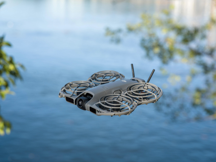 Wenn er mit der DJI RC-N3 Fernsteuerung gekoppelt ist, kann Neo 2 eine maximale Videoübertragungsdistanz von 10 km erreichen. Bediene die Kamera flexibel mit traditionellen RC-Steuerknüppeln, wenn du professionelle Aufnahmen machen möchtest.