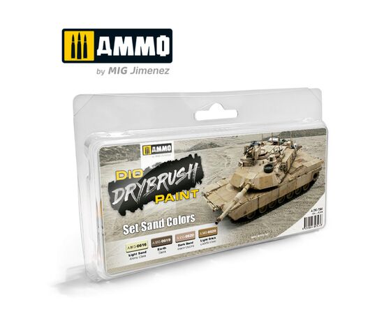 1 x DRYBRUSH Light Sand (A.MIG-0616 / Glow2B 2074006169)1 x DRYBRUSH Earth (A.MIG-0619 / Glow2B 2074006190)1 x DRYBRUSH Dark Sand (A.MIG-0620 / Glow2B 2074006206)1 x DRYBRUSH Light Brick (A.MIG-0626 / Glow2B 2074006268)