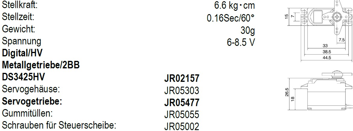 DS3421HV 0.16/60° 6.6kg 2BB 26.5x23x33mm MG