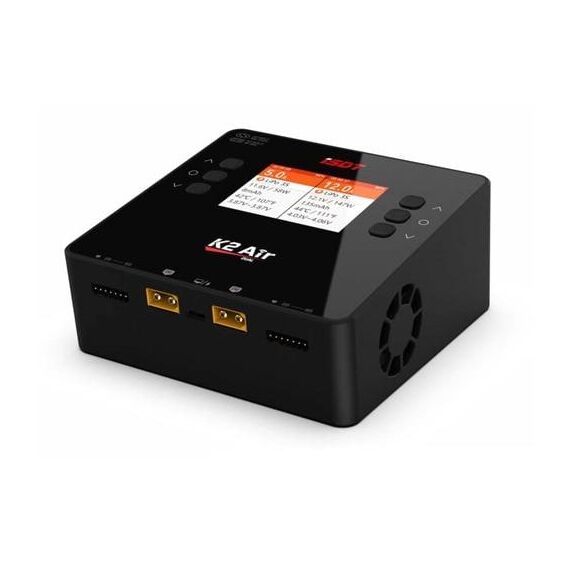 Das iSDT K2 Air Ladegerät ist ein leistungsstarkes kompaktes Modellbau-Ladegerät und der direkte Nachfolger des K2. Das K2 Air unterstützt das BattAir-System. Die Daten der BattAirPlugs werden kabellos an das K2 Air übertragen. Das Ladegerät kann entweder mit dem integrierten 200W Netzteil ab dem 230 V AC Netz oder mit einer optionalen 10-30 V DC Stromquelle (Netzteil, Autobatterie, etc.) versorgt werden. Die verfügbare Ladeleistung wird je nach Bedarf automatisch auf die beiden Ausgänge verteilt. Wird das K2 Air mit einer externen DC Stromquelle versorgt, sind bis zu 2x 500W Ladeleistung möglich. Es können alle gängigen Akkus aus dem Modellbau-Bereich geladen werden, darunter 1-6S LiPo, LiFe, Li-Ion und LiHV sowie 1-12 Zellen Blei und 1-16 Zellen NiMH und NiCD Akkus.
