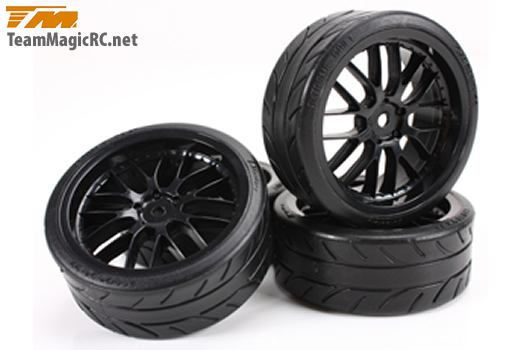 Reifen - 1/10 Drift - montiert - 8 Spoke schwarz Felgen - 12mm Hex - Radials 2.2