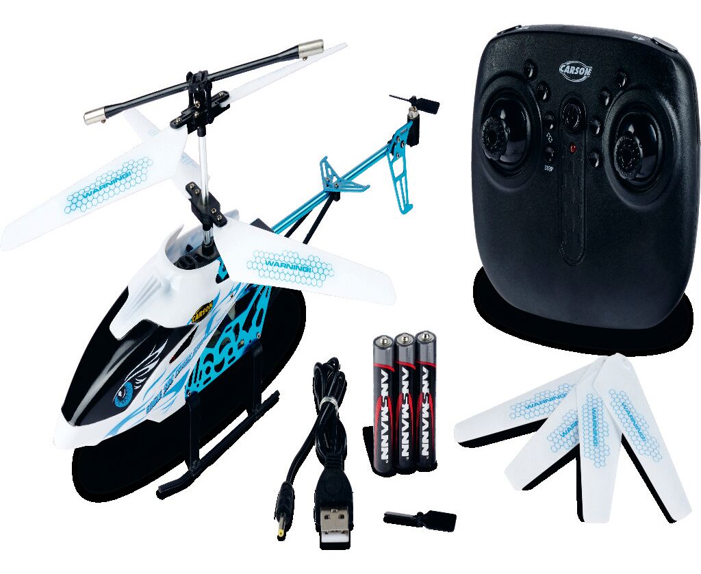 Mit dem CARSON Easy Tyrann 280 Crash Stop bist du sowohl indoor als auch outdoor immer sicher unterwegs: Dank Crash-Stop-Sensor erkennt der ferngesteuerte Helikopter Hindernisse im vorderen Bereich, stoppt und fliegt circa ein bis zwei Meter zurück. Das robuste Alu-Chassis sorgt für eine hervorragende Stabilität in der Luft. Die automatische Höhenkontrolle ermöglicht zudem einen stabilen Schwebeflug. Und auch bei Start und Landung kann dank automatischer Start- und Landefunktion nichts passieren. Für zusätzliche Sicherheit sorgt ein Not-Aus-Knopf am Sender. Geliefert wird der Easy Tyrann 280 Crash Stop mit allem zum Betrieb nötigen Zubehör (2.4 GHz Fernsteuerung, Flugakku und USB-Ladekabel) sowie einem Ersatzrotor-Set. Somit kannst du direkt nach dem ersten Ladevorgang abheben!