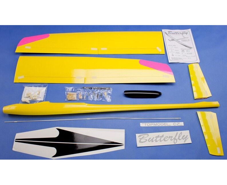 Der Butterfly ist ein Segelflugzeug, das extrem schnell fliegt (ausgerüstet mit dem bürstenlosen Motor MVVS 3,5 / 1200), hat eine lange Flugzeit, ist perfekt zu fliegen (Tragflügelprofil 8,7% dick),auch Kunstflug ist kein Problem. Dank der Klappen die auf 60 - 90 ° heruntergedrückt werden können kann aber auch sehr langsam geflogen werden.