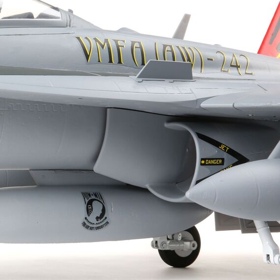 Das werkseitig aufgebrachte Lack- und Dekor-Finish ist an das Geschwader VMFA (AW) -242 des US-Marine Corps angelehnt. Gleichzeitig bietet es eine hervorragende Sichtbarkeit und ein Modell, das sich überall sehen lassen kann.