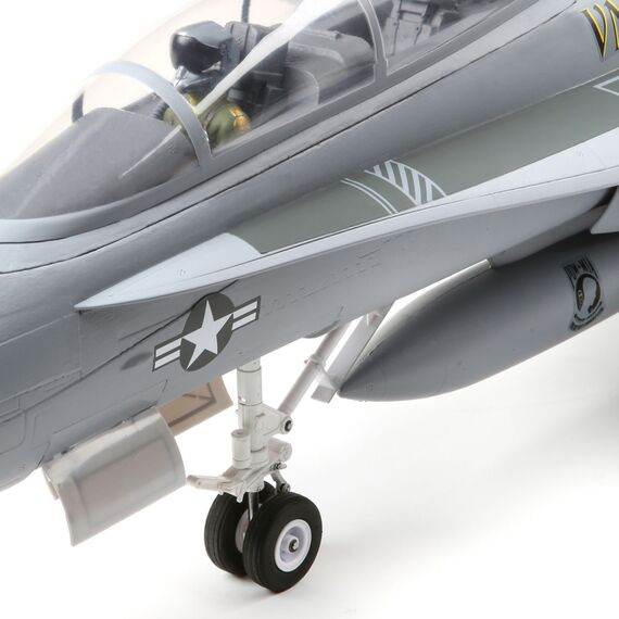 Das lenkbare Bugfahrwerk mit Zwillingsreifen und das rotierende Hauptfahrwerk sind mit zuverlässigen, werksseitig installierten elektrischen Einziehfahrwerksmechaniken und lackierten, stoßdämpfenden Leichtmetall-Nachläuferbeinen ausgestattet. Es ist das originalgetreuste Fahrwerk, das bisher auf einem F-18 EDF-Modell verbaut wurde!