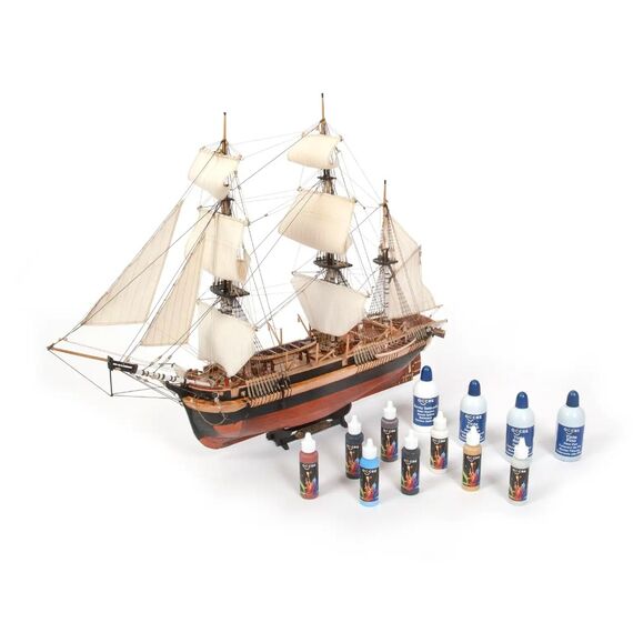 Die Packung enthält die Farben, Farbtöne und Lacke, die für die perfekte Verarbeitung der HMS Terror erforderlich sind.