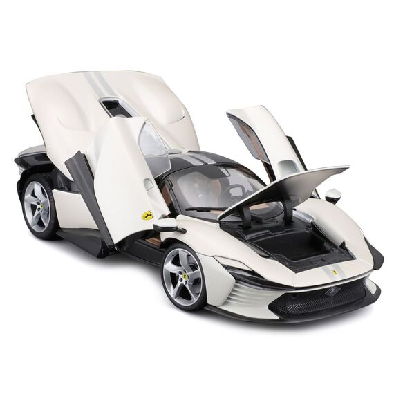 Von Ferrari lizenzierte, hochwertige Modellautos aus Zinkguss mit grosser Liebe zum Detail in einer einzigartigen Geschenkbox. Die Türen, Motorhauben und Hecklappen lassen sich zum Teil öffnen und Steuer und Federung sind voll funktionsfähig.
