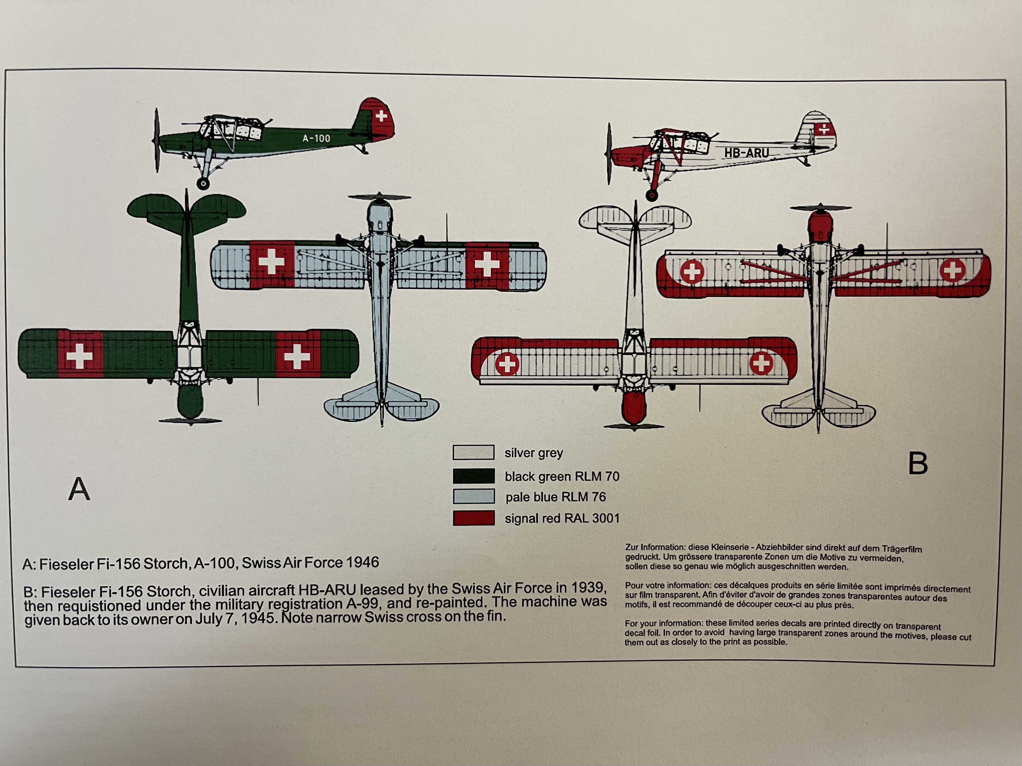 Fieseler Fi156 Storch Schweizer Decals 1:72