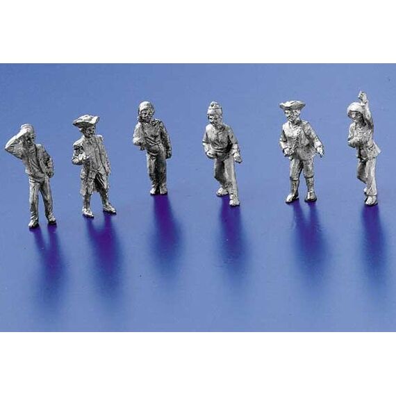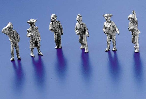 Seeleute aus dem 18. Jahrhundert. 6 Figuren aus Weissmetall-Guss unbemalt.