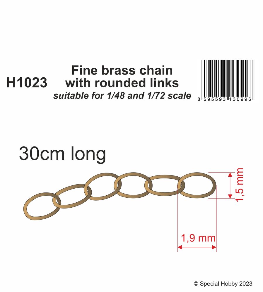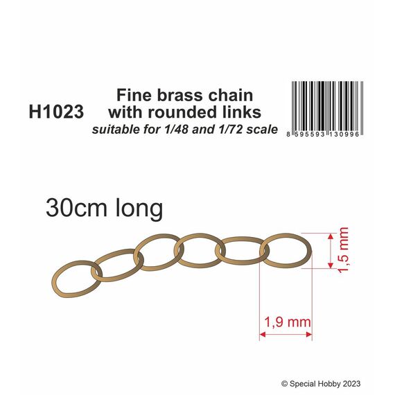 Fine brass chain with rounded links - suitable for 1/48 and 1/72 scale