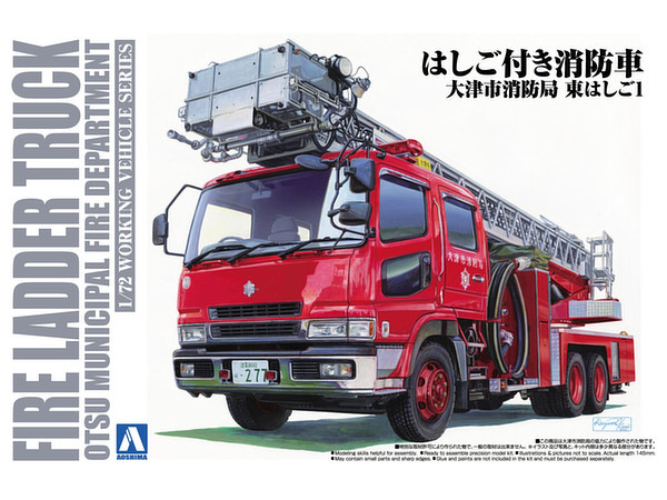 Equipped with a 30 meter class ladder, the fire ladder truck of the Otsu municipal fire department is designed to engage not only in human rescue, but also fire fighting activities for high rise buildings. The ladder can be extended to both elevation and depression angles to cope with various fire fighting situations.