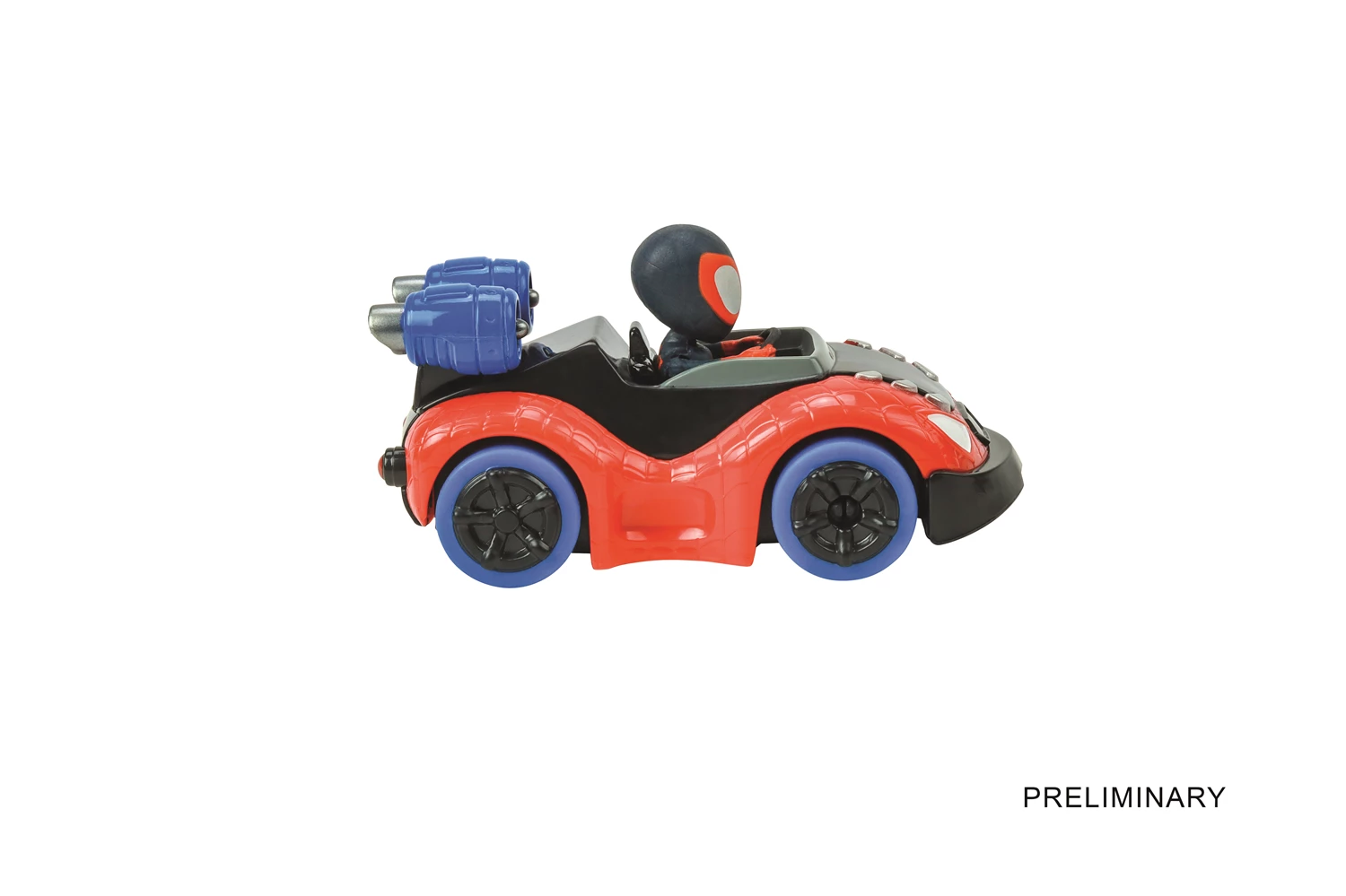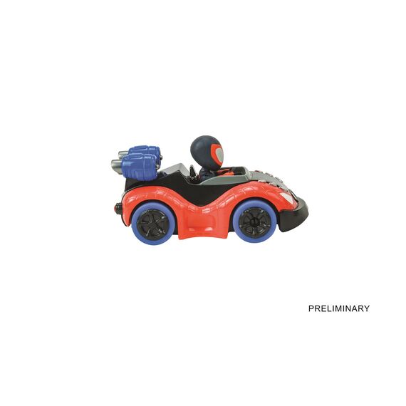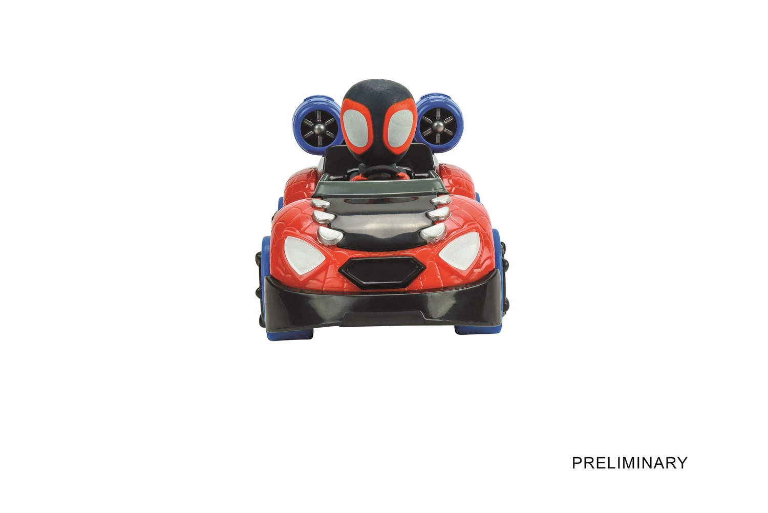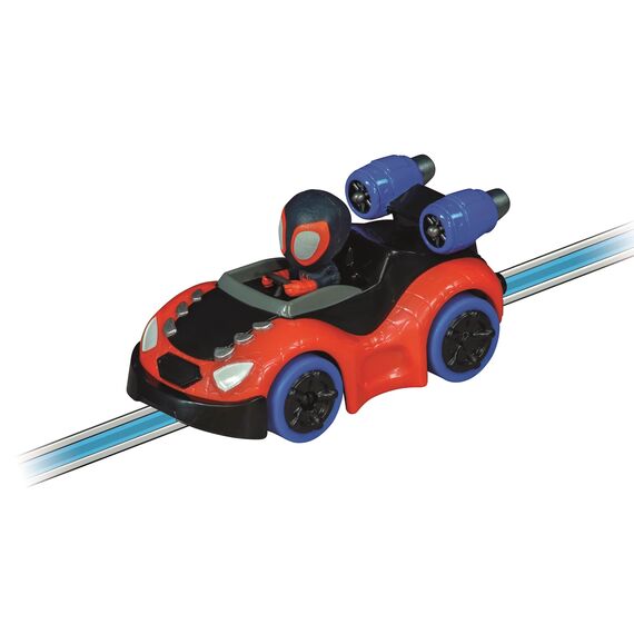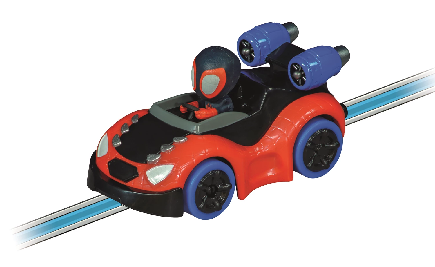 Miles Morales alias Spin bestens bekannt aus der Disney Junior-Serie 'Spidey and His Amazing Friends' dreht seine Runden jetzt auch auf den blauen Schienen der CARRERA First-Bahn. Das spektakuläre Fahrzeug mit dem Superhelden am Steuer kommt im Massstab 1:50 und ist mit seinen weichen Formen bestens für kleine Kinderhände geeignet. Empfohlen ab 3 Jahren.