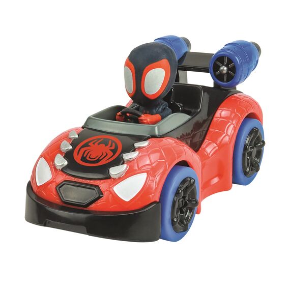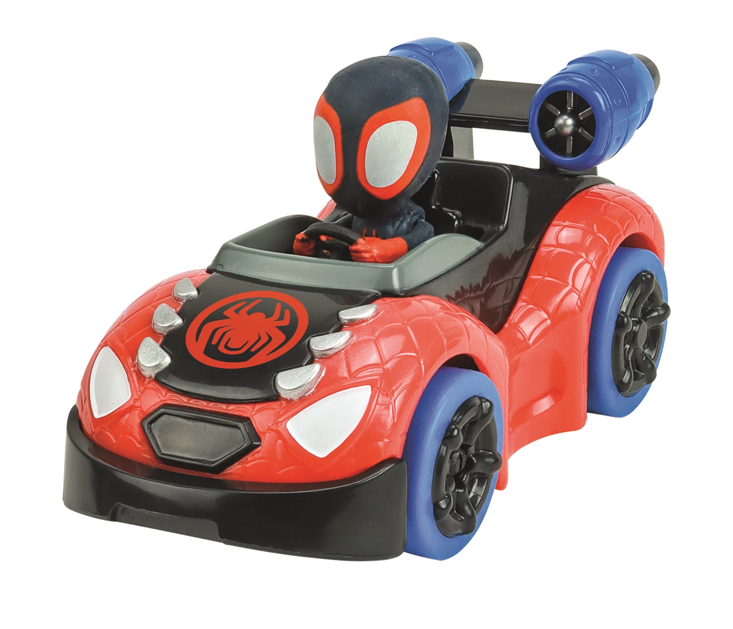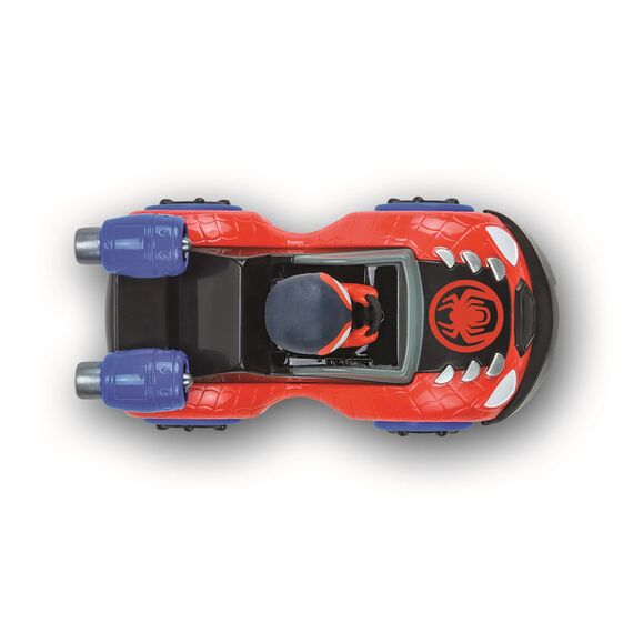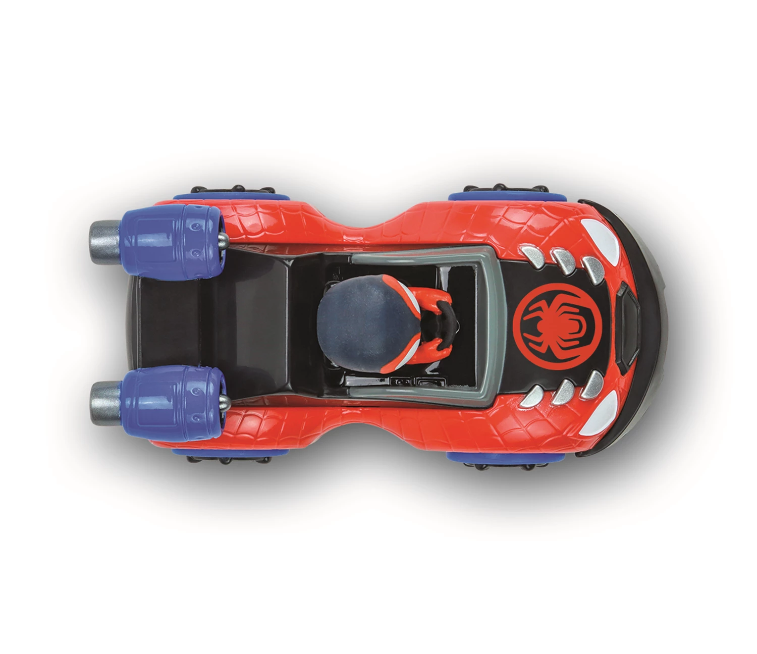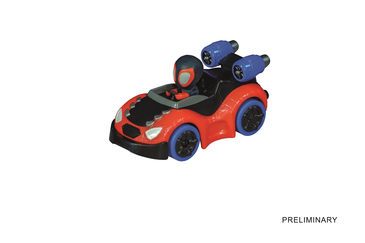 Miles Morales alias Spin bestens bekannt aus der Disney Junior-Serie 'Spidey and His Amazing Friends' dreht seine Runden jetzt auch auf den blauen Schienen der CARRERA First-Bahn. Das spektakuläre Fahrzeug mit dem Superhelden am Steuer kommt im Massstab 1:50 und ist mit seinen weichen Formen bestens für kleine Kinderhände geeignet. Empfohlen ab 3 Jahren.