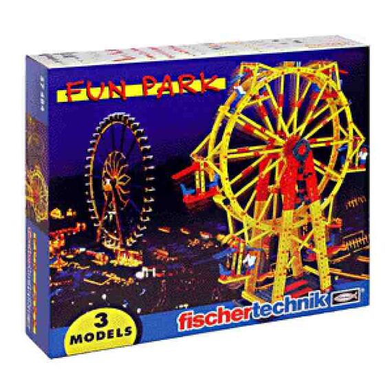 Drei gigantische Rummelplatzmodelle lassen sich aus diesem Kasten zusammenbauen. Das Riesenrad mit einer Höhe von über 70 cm, das Kettenkarusell mit einem Durchmesser von fast 50 cm und nicht zuletzt der Octopus mit seinem rafinierten Antriebssystem aus zwei gegenläufigen exzentrischen Drehbewegungen, durch die sich zusätzlich zur Dreh- auch Auf- und Abbewegung ergeben.