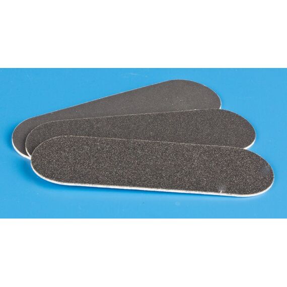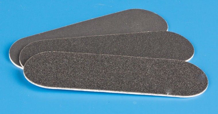 3 wasserfeste Sandpapierschleifpads auf einer selbstklebenden, dünnen Schaumstofflage aufgebracht. Die Schleifpads werden auf der im Set enthaltene Halter aus weichem Gummi geklebt. Durch das flexible Griffstück hat man die optimale Kontrolle auch bei gerundeten Untergründen. Passt sich den Rundungen bei größeren Durchmessern an. Das ständige Wiederholen des verspachteln der Klebenaht zum Beispiel bei Flugzeugrümpen von Plastikmodellbausätzen entfällt.