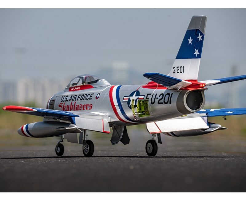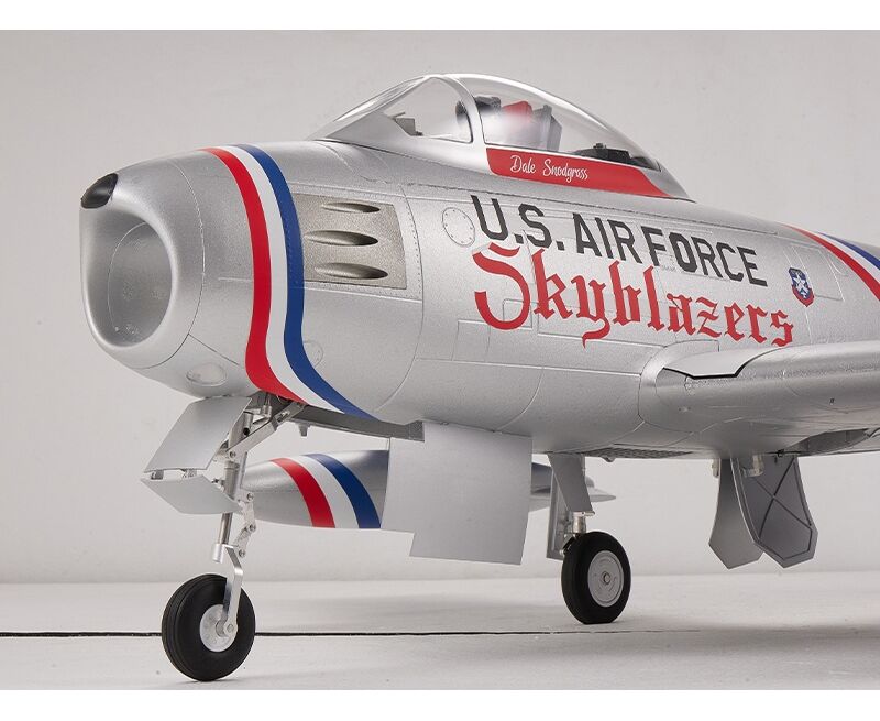 Die 80mm F-86 von FMS ist ein originalgetreuer RC-Jet aus EPO-Hartschaumbauweise mit 1,22m Spannweite. Das Modell kommt nahezu flugfertig aus der Box - inklusive zahlreicher Scale-Details, einem elektrischen Einziehfahrwerk, einem effizienten 12-Blatt-Impeller und funktioneller Beleuchtung.