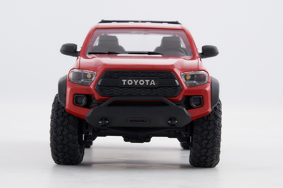 Offiziell lizenzierte Tacoma-Karosserie in drei Farben Die robuste ABS-Hartplastik-Karosserie wurde per Präzisionsspritzguss gefertigt und bildet alle markanten Details des Tacoma originalgetreu nach: Kühlergrill, Radläufe, Stoßfänger, Türgriffe, Scheibenwischer, Rückspiegel und sogar die Heckklappe wurden originalgetreu nachgebildet. Ab Werk ist der Tacoma in drei typischen Farben des Originals erhältlich: Grau, Rot und Blau - so bleibt der Scale-Look auch in 1:24 authentisch.