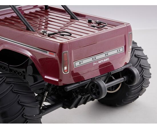 Die werkseitig installierte Wheelie-Bar verfügt über mehrere einstellbare Befestigungspunkte. Sie sorgt dafür, dass das Modell bei Sprüngen oder hohen Geschwindigkeiten stabil bleibt und ungewollte Rückwärtsflüge verhindert. So bleibt der Ford F100 auch bei waghalsigen Manövern sicher in der Spur.