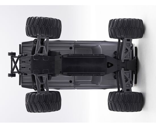 Mit seinem 2WD-Hinterradantrieb und einem kraftvollen 550er-Bürstenmotor liefert der Monstertruck beeindruckende Power. Die massiven Gummireifen bieten optimalen Grip auf unterschiedlichen Untergründen. Der zentral platzierte Akkuträger mit Schnappverschluss erleichtert den Akkuwechsel und ist mit Lipo- sowie NiMH-Akkus kompatibel.