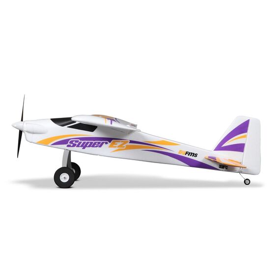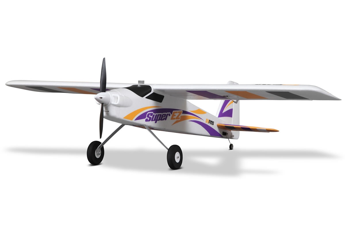 Der Hochdecker ist aus leichtem EPO-Schaum gefertigt und verfügt über eine extrem niedrige Flächenbelastung und stabile Flugeigenschaften - damit Anfänger auch bei niedrigen Geschwindigkeiten ein gutes Handling haben. Ein verbessertes Brushless Antriebssystem und ein verbesserter Propeller verleihten der V3 Version der SuperEZ mehr Leistung, während die Flugzeiten von 10-15 Minuten beibehalten werden. Die Version 4 kommt nun mit leistungsfähigeren 9g Digitalservos mit Metallgetriebe und einem neuen Farbdesign. Ein robustes, leichtes Metallfahrwerk nimmt selbst die härtesten Landungen auf.