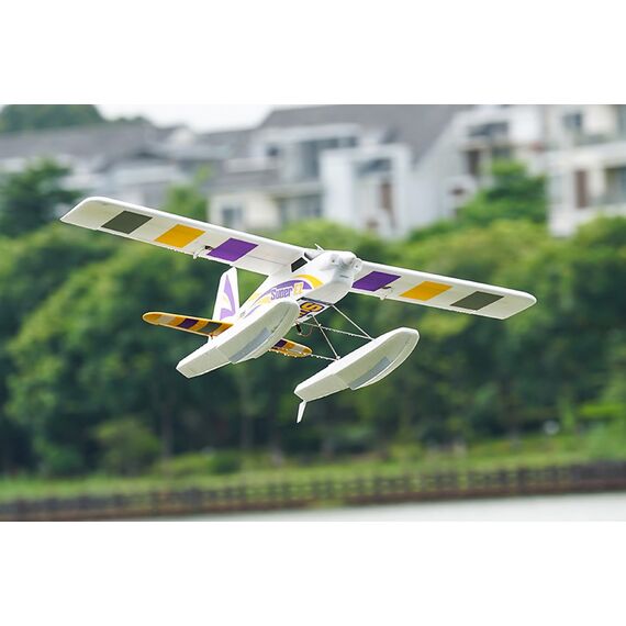 Das Flugmodell wird neben dem Fahrwerk mit einem Schwimmer-Set ausgeliefert, welches Starts und Landungen auf Wasser und Schnee möglich machen.