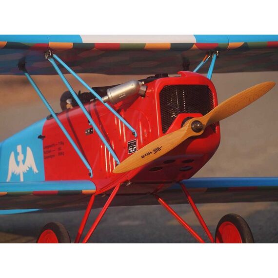 Die Fokker D7 als ARF Modell der Extraklasse. Das Modell wird serienmäßig mit viel Zubehör geliefert wie Gewehr- und Motorattrappen, Cockpitinstrument, Pilotenbüste, Scale Räder und vieles mehr. Die Fokker D7 eignet sich für 6S Elektroantriebe oder Verbrennungsmotoren mit 20cc Hubraum.