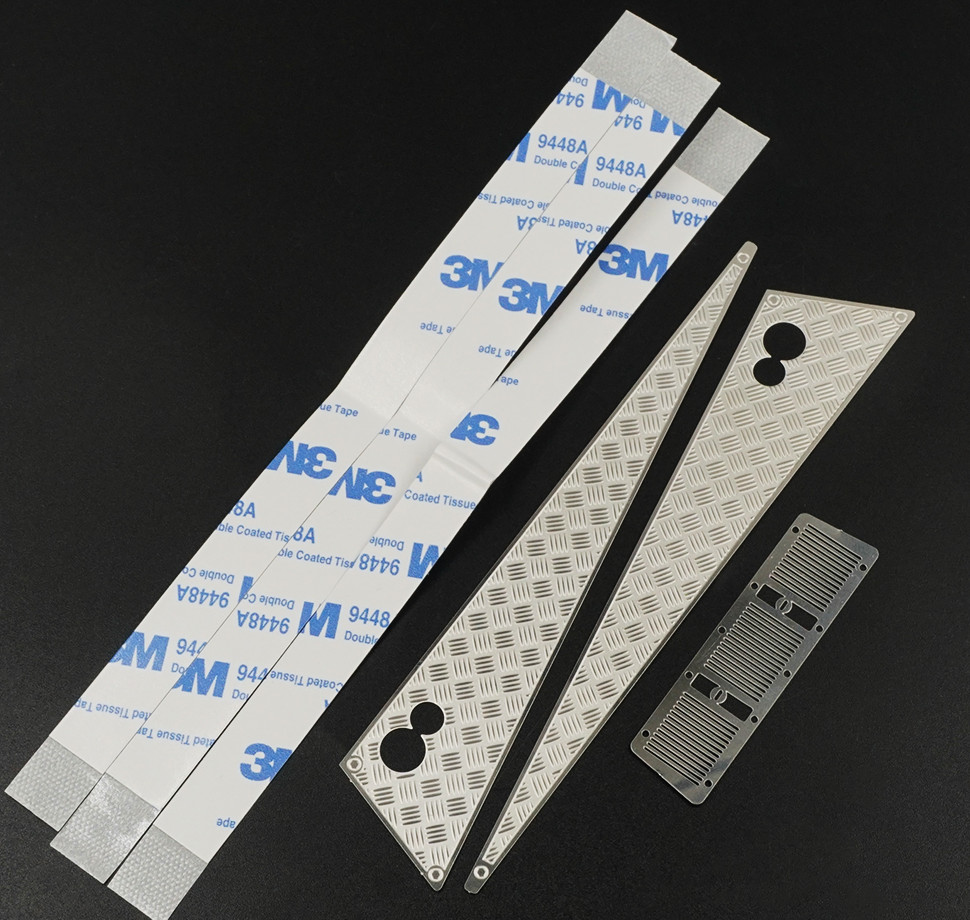 Add scale realism to your Traxxas G500 and G63 body with these stainless steel Diamond plates, comes with double sided mounting tape cut to match the plates for easy installation. Comes pre-cut to match the shape of the bonnet!