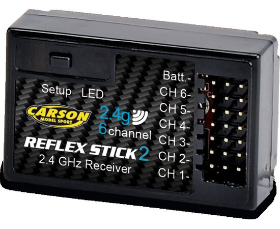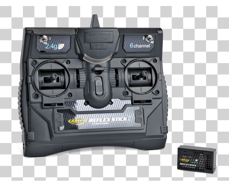 Die Reflex Stick II von Carson-Model Sport ist eine preisgünstige, moderne und technisch hochwertige 6-Kanal Fernsteueranlage für den universellen Einsatz in vielen RC-Fahrzeugen und Schiffen. Es können unabhängig 6 Kanäle über 2 Steuerknüppel und 2 Schalter (1x Taster/1x Schalter) angesteuert werden. Das REFLEX STICK 6 Channel System ist mit allen MFC- und DMD Einheit von TAMIYA voll kompatibel, da die Trimmung per Schieberegler erfolgt.