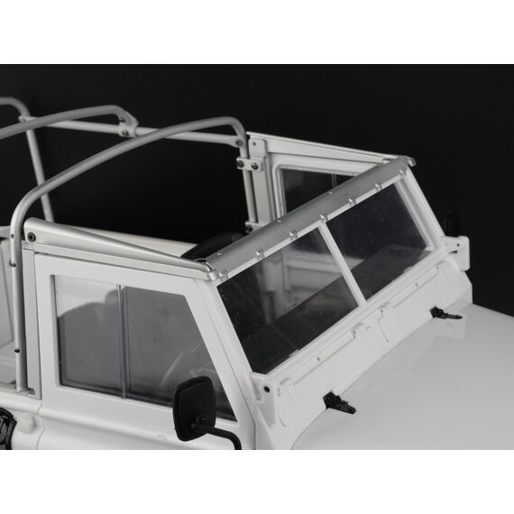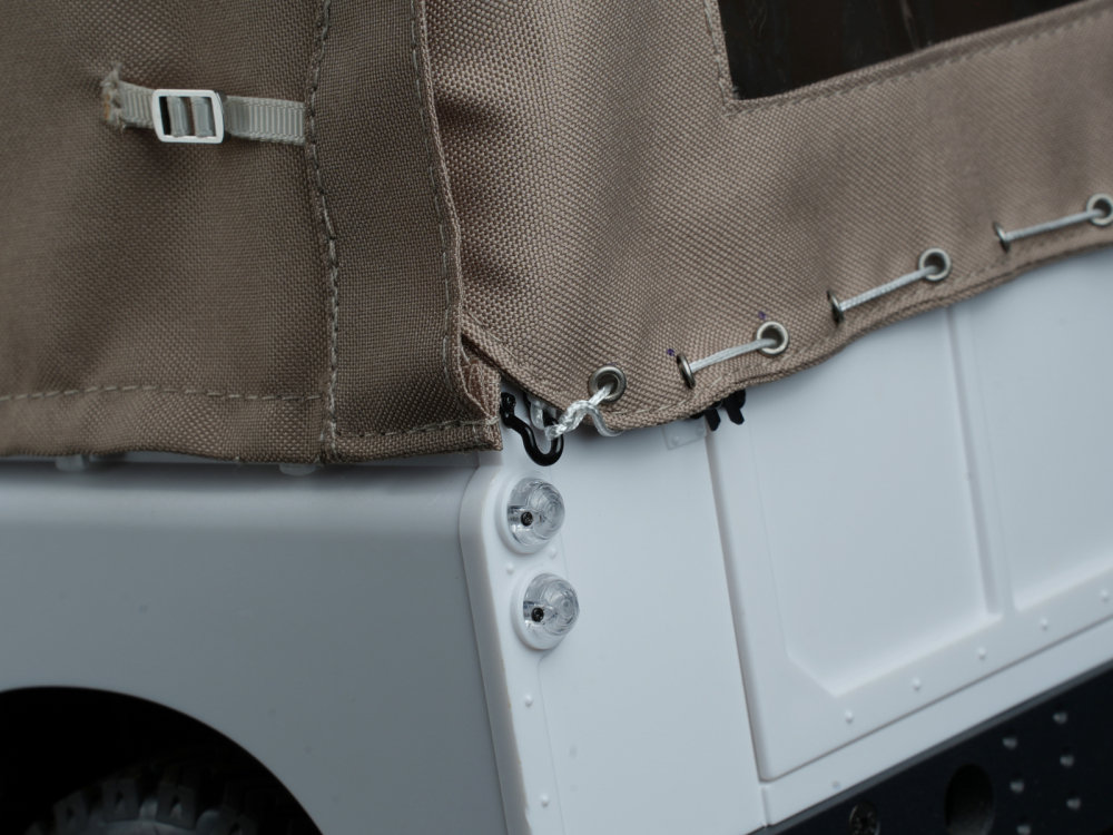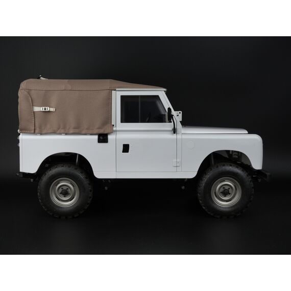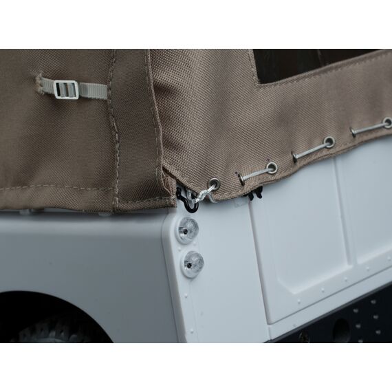 Dies ist ein KUDU™-Komplett-Canvas-Softtop- und Reifenset für die Land Rover 88-SerieDieses für die Land Rover Serie 88 konzipierte KUDU Canvas Softtop-Set ermöglicht Ihnen, Ihr Fahrzeug in einen Truck mit Stoffverdeck umzuwandeln und dabei eine maßstabsgetreue Optik mit präziser Passform beizubehalten.Unter der Plane befindet sich ein kompletter Aluminium-Reifensatz, der die vorderen und hinteren Haubenstangen, horizontale Verbindungsstangen, Türober- und Türpfosten-Abflusskanäle sowie eine Kopfschiene umfasst.Die Leinwand kann auf der Rückseite aufgerollt und mit Riemen an der Oberseite befestigt werden.Dieses Stoffverdeck ist in Sandfarbe erhältlich. Die Fotos dienen nur als Referenz.