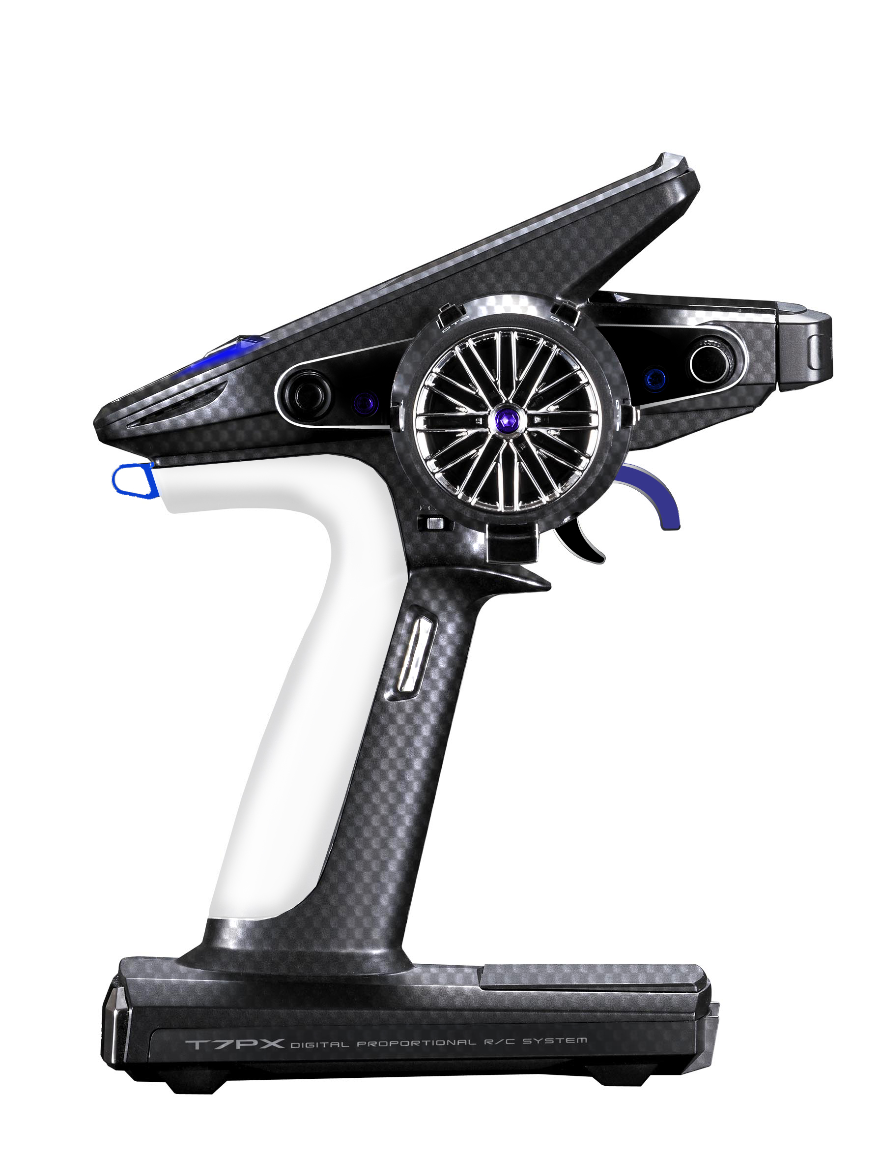 Limited Edition! Die T7PXR ist ein professionelles 7-Kanal 2.4 GHz RC-Car Fernsteuersystem im hochwertigen Carbon Look mit 4,3 Zoll Farb-Touchdisplay! Die Lenkradaufnahme ist aus Aluminium gefertigt und bietet maximale Festigkeit sowie einen erweiterten, feineren Verstellbereich (Winkel). Standardschrauben wurden durch Alu- oder Titanschrauben ersetzt. Weitere Aluteile wurden gewichtsoptimiert. Die Limited Edition verfügt über eine weiße Griffschale. Eine schwarze Griffschale ist zusätzlich im Lieferumfang enthalten. Die ultraschnelle Signalübertragung T-FHSS SR und der bewährte 2.4 GHz R334SBS-E 4-Kanal Empfänger (nur für Elektromodelle) zeichnen dieses System aus. Maximale Empfangssicherheit!