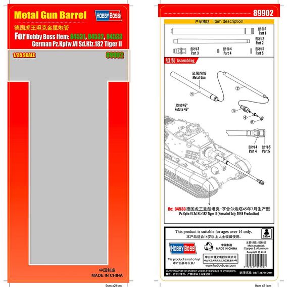 German Pz.Kpfw.VI Sd.Kfz.182 Tiger II Metal Gun Barrel f.Item 84531,84532,84533