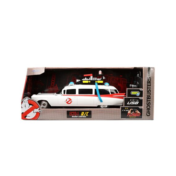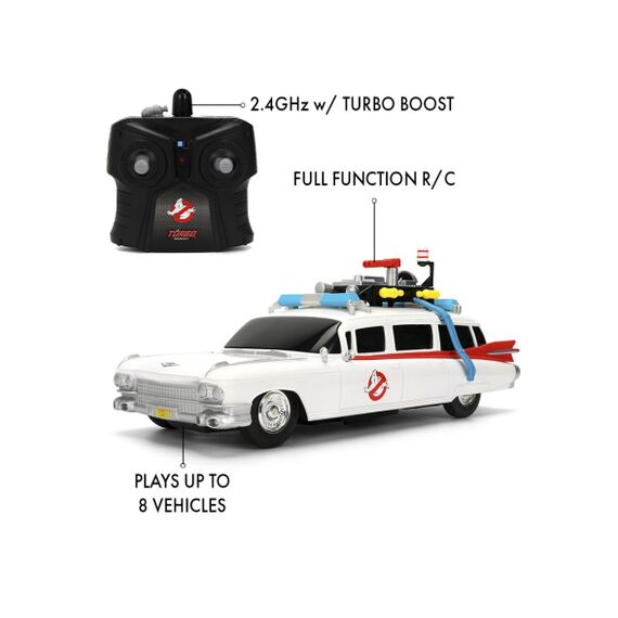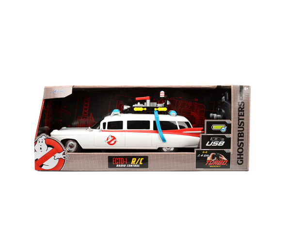 Jada Toys Ghostbusters ECTO-1 RC Fahrzeug (1:16) – ferngesteuertes Kultauto mit Turbo-Funktion, 2.4 GHz, inkl. Akku & USB-Ladekabel, Spielzeug für Kinder & Filmfans ab 8 Jahren