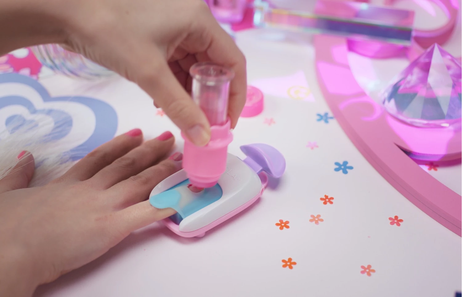 Kinder wollen das was sie bei ihren erwachsenen Vorbildern sehen nämlich cool gestylte Fingernägel mit fröhlich bunten Motiven. Mit dem Go Glam Nagelstudio von Cool Maker geht das super einfach und ist viel günstiger als ein Besuch im Nagelsalon. Damit auch das Lackieren nicht zur Hürde wird ist im Set eine Lackierhilfe mit Silikonmaske enthalten. Einfach aufklappen den Finger einlegen und den Nagel unter die Öffnung schieben. Nach dem Zuklappen einfach mit dem Applikator die gewünschte Nagellackfarbe auftupfen. Der Lack muss dabei nicht besonders gleichmässig aufgetragen werden da er durch das Bedrucken geglättet wird. Nach dem Trocknen behält der Nagellack eine leicht klebrige Konsistenz damit die Motive gut haften. Nach ca. 3 Minuten kann bereits gedruckt werden. Ob alle Nägel mit einheitlichen Motiven oder wild gemixt erlaubt ist was gefällt. Wichtig: Nach dem Bedrucken für Glanz und längere Haltbarkeit den Klarlack nicht vergessen. Cool Maker steht für Selbermachen mit Spass und schönen Ergebnissen. Das Portfolio umfasst neben Go Glam auch KumiKreator und PopStyle zum Herstellen von Armbändern Pottery Cool zum Töpfern und Shimmer Me zum Gestalten von schimmernden Tattoos.