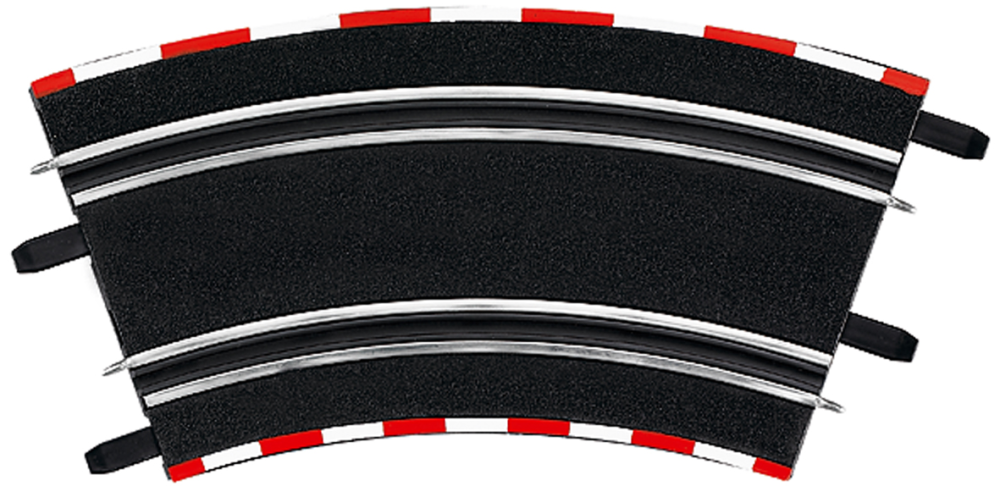 Steilkurve 2 45° für Massstab 1:43. Inhalt: 4 Kurven à 22.6 cm (Buchstabe V), Stützen, Schienenverbinder