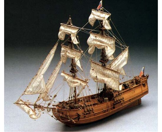 Vorbildgetreues Modell einer englischen Brigantine, wie sie im amerikanischen Unabhängigkeitskrieg eine wesentliche Rolle spielte.