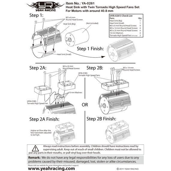 This heat sink comes with dual high speed fan for Motors with around 40.8mm diameter. The air-flows can be further enhanced by adding washers between the fans and the heat sink. On the other hand, you may install the heat sink without the washers to save space.