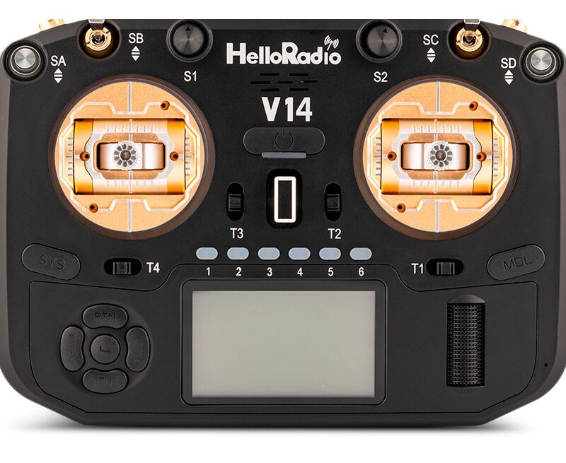 HelloRadio V14 MAX R9 OLED 2,4GHz 4in1 LBT M2 Fernsteuerung schwarz, gold
