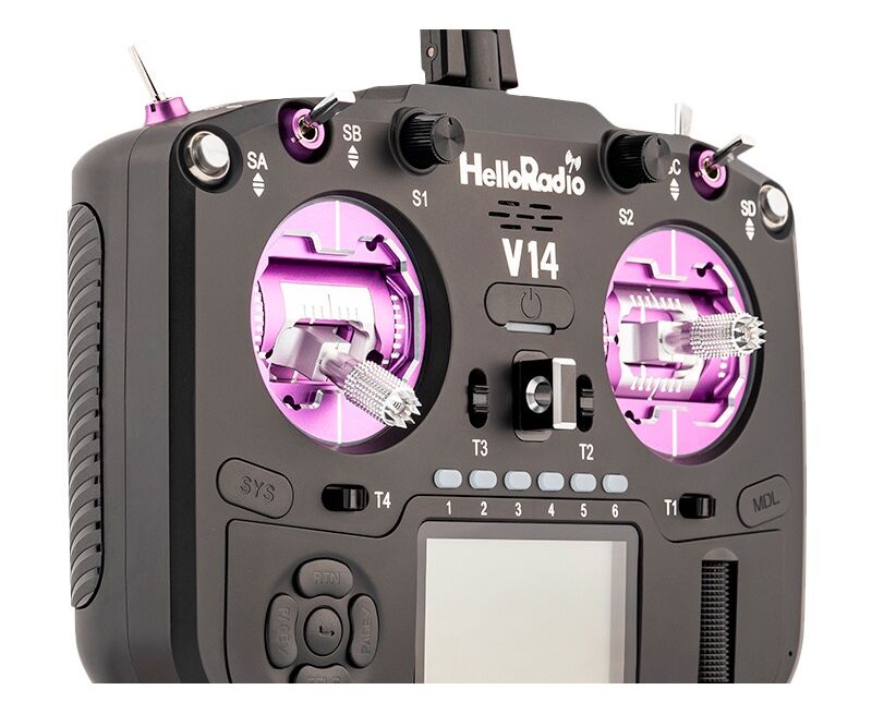 HelloRadio V14 MAX R9 OLED 2,4GHz ELRS LBT M2 Fernsteuerung schwarz, lila