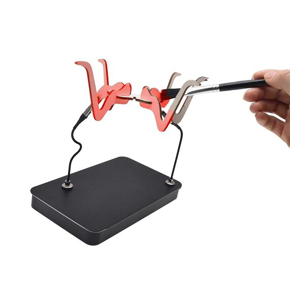 Dank der Magnete und der biegsamen, flexiblen Klemmen können die Werkstücke bequem und zuverlässig in Position gehalten werden, egal ob beim Löten, Airbrushen oder anderen Arbeiten.