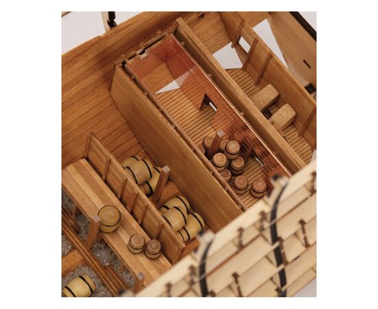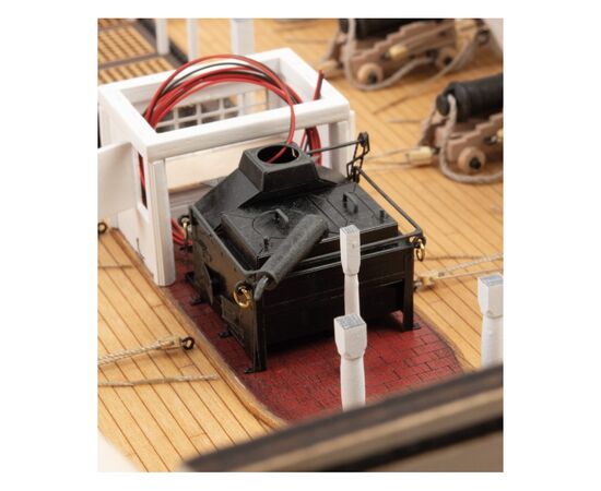Diese Anatomie ermöglicht es Ihnen, beim Zusammenbau des Modells die Konstruktion und den Aufbau des Schiffes sowie die sehr hohe Detailgenauigkeit eingehend zu untersuchen. Der Modellbausatz enthält Tausende von Teilen aus hochpräzise lasergeschnittenen Platten, Harthölzern, Messing und Gusseisen. Dazu kommen Kupferverkleidungen für den Rumpf, genähte und anbringungsfertige Baumwollsegel und ein Holzarbeitsboden. Nicht zu vergessen der schöne Sockel aus Methacrylat mit dem Namen in Gold, auf dem das Modell nach der Fertigstellung ausgestellt werden kann.