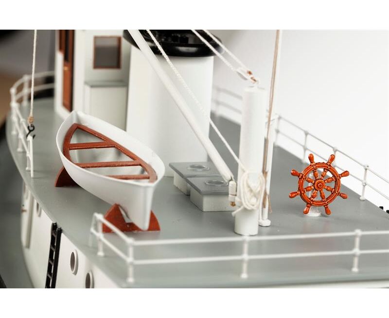 Ein klassischer Billing Boats Baukasten mit Kiel, Spanten und allen Aufbauteilen mit Laser ausgeschnitten. Schöne Beschlagteile aus Kunststoff und Messing ergänzen den Bausatz.