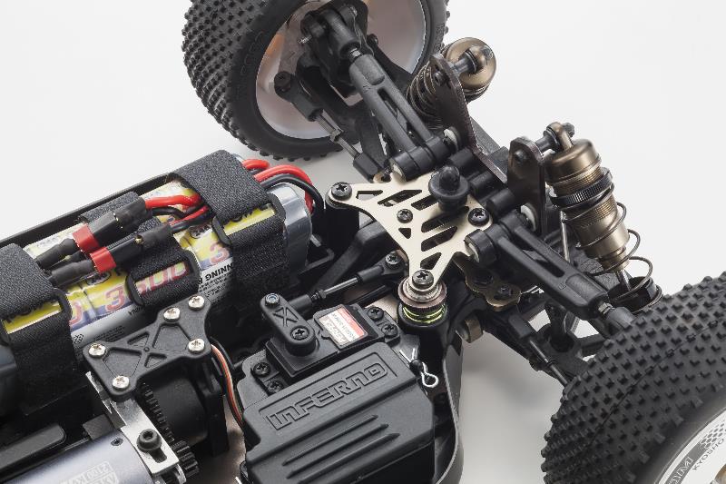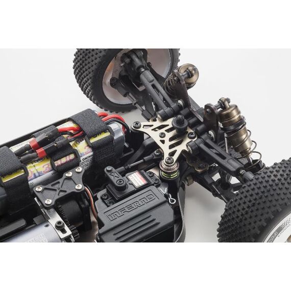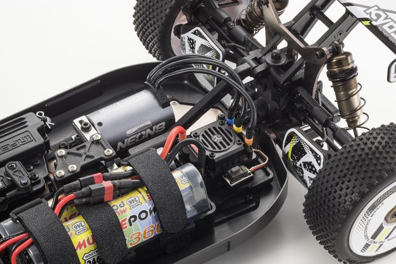 The world-beating performance of Inferno MP9 TKI is now available in electric power with the launch of the MP9e TKI Readyset. Simply switch ON and feel the power surge with instant acceleration to full speed. With precision control and handling, the MP9e marks a new era in electric buggy performance that is ready to take on any type of course. The TKI (Team Kyosho International) brand marks this MP9e as a fully equipped race spec version with the Inferno’s superior racing performance and wide scope for setting options. Expert racers to beginners can enjoy breathtaking performance on any off-road circuit with this fully pre-assembled Readyset packaged with the 2.4GHz large LCD screen KT-331P transmitter and fast response/high torque KS-5031-09MW servo installed. Combined with the powerful Team Orion NEON8 brushless motor, anyone can experience and enjoy the very best electric off-road performance.